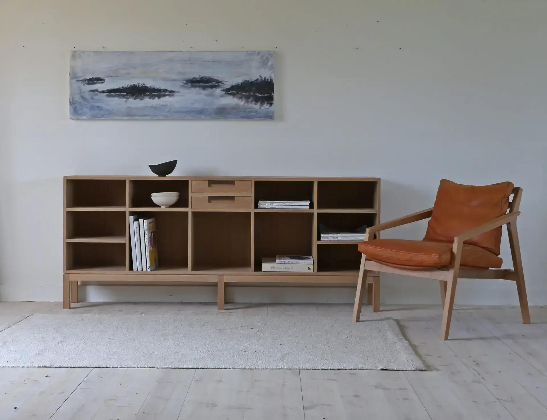 Klinte oppbevaringssystem med mange muligheter, kan konfigureres selv. Produsert i heltre eik.
